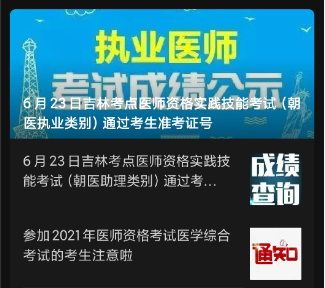 2021年吉林考點(diǎn)醫(yī)師資格實(shí)踐技能考試(朝醫(yī)助理類(lèi)別)成績(jī)查詢(xún)通知匯總