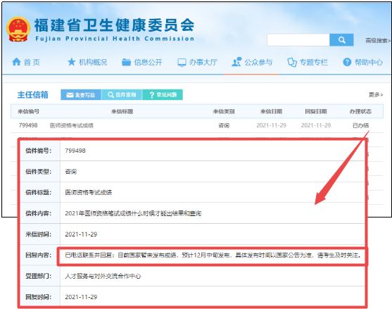 2021年執(zhí)業(yè)/助理醫(yī)師考試二試及一試延考考生,考試結(jié)束后都在關(guān)注何時(shí)開(kāi)始查分,近期有學(xué)員在福建衛(wèi)健委網(wǎng)站上提問(wèn):2021年醫(yī)師資格筆試成績(jī)什么時(shí)候才能出結(jié)果和查詢?官方的回復(fù)如下: