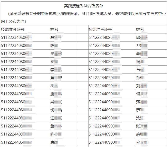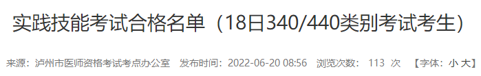 瀘州市2022年醫(yī)師實(shí)踐技能考試合格名單(18日340/440類別考試考生)