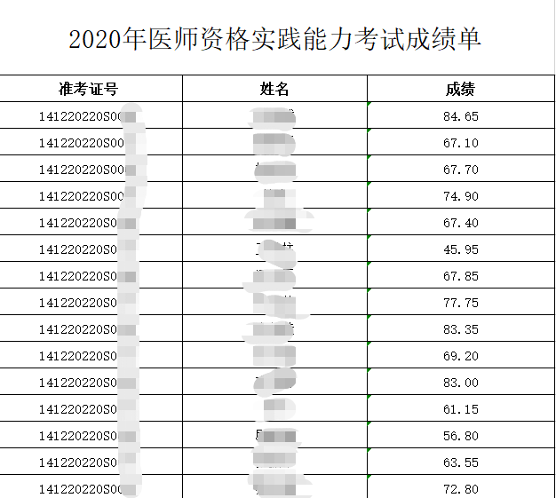 運城考點2020醫(yī)師資格實踐技能考試成績公布(7月15日)