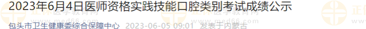 內(nèi)蒙古包頭2023年6月4日醫(yī)師資格實(shí)踐技能口腔類別考試成績(jī)公示