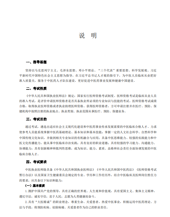 中醫(yī)執(zhí)業(yè)醫(yī)師資格考試大綱(2020年版)pdf