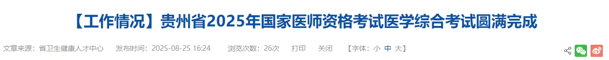貴州省2025年醫(yī)師資格綜合筆試共22000余名考生參加,以下為貴州省考點發(fā)布的官方報道信息:
