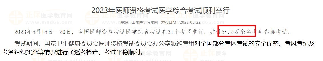 國家醫(yī)學(xué)考試網(wǎng)官方發(fā)布:2024年醫(yī)師資格綜合筆試共59.3萬余名考生參考!
