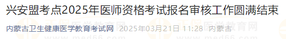 - · 內(nèi)蒙古興安盟考點(diǎn)2025年醫(yī)師資格考試時(shí)間/報(bào)名/審核通知