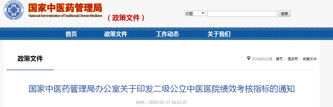 國(guó)家中醫(yī)藥管理局關(guān)于二級(jí)公立中醫(yī)醫(yī)院績(jī)效考核指標(biāo)