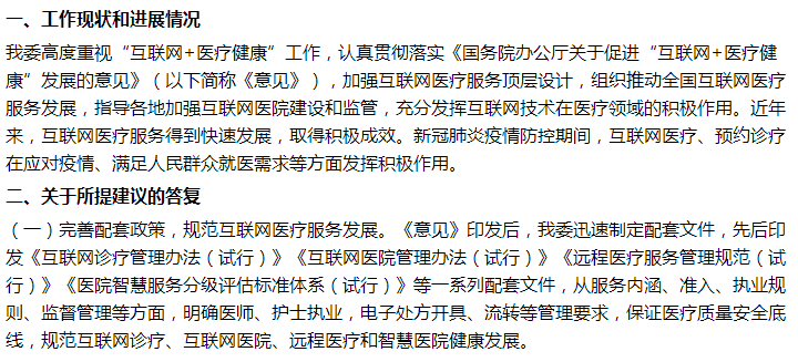 國家醫(yī)保局關(guān)于大力推進互聯(lián)網(wǎng)醫(yī)院快速發(fā)展的建議答復!