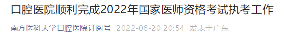 南方醫(yī)科大學(xué)口腔醫(yī)院順利完成2022年國家醫(yī)師資格考試執(zhí)考工作!相關(guān)信息醫(yī)學(xué)教育網(wǎng)編輯整理分享如下: