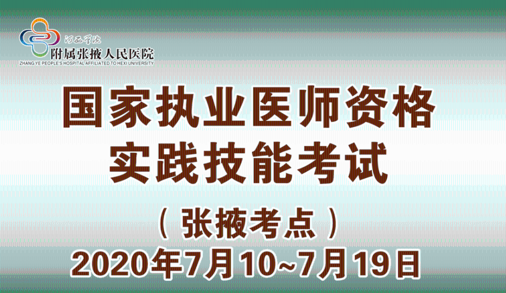 我院作為河西地區(qū)唯一一家國(guó)家醫(yī)師資格考試實(shí)踐技能(臨床、中醫(yī)類別)考試基地,7月10日至20日, 受省衛(wèi)健委考試培訓(xùn)中心委托,作為甘肅考區(qū)張掖考點(diǎn),承接河西五市張掖、酒泉、武威、金昌、嘉峪關(guān)2498名考生2020年國(guó)家醫(yī)師資格考試實(shí)踐技能 (臨床、中醫(yī)類別)考試工作。