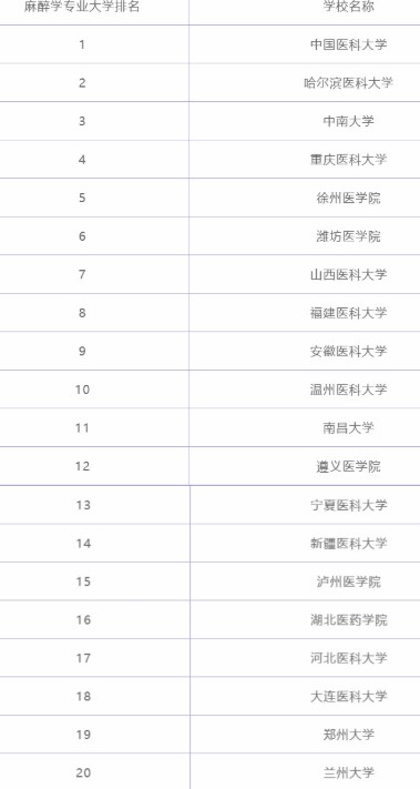 那么麻醉學(xué)專業(yè)實(shí)力排名如何呢?我們不妨來看一下下面這個排行榜吧。