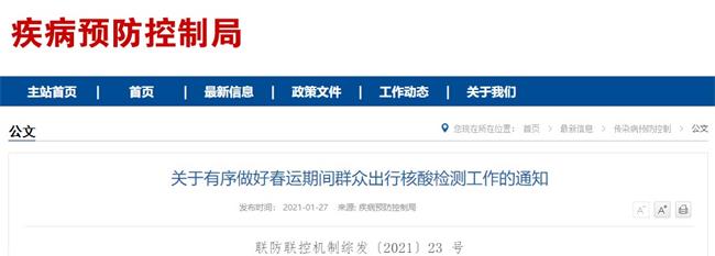 疾控局關(guān)于有序做好春運(yùn)期間群眾出行核酸檢測(cè)工作的通知