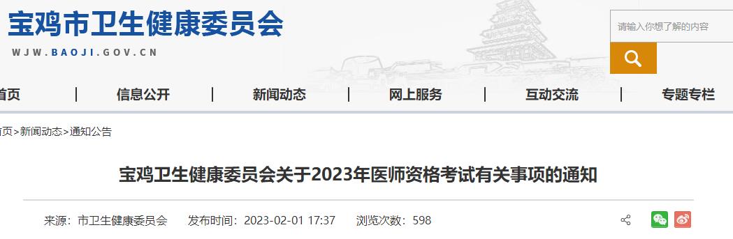 寶雞衛(wèi)生健康委員會(huì)關(guān)于2023年醫(yī)師資格考試有關(guān)事項(xiàng)的通知