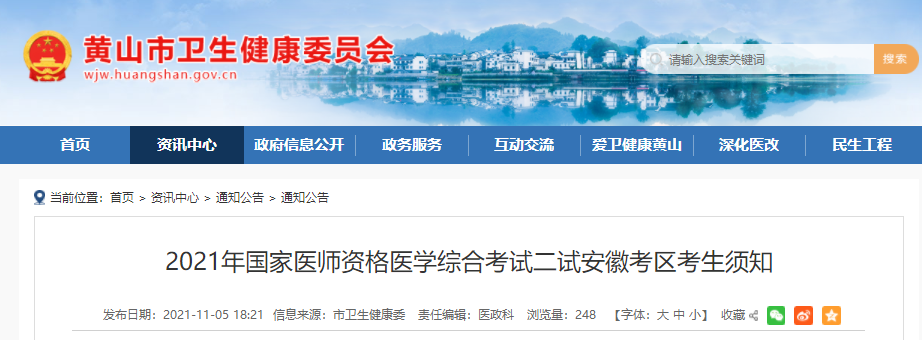 安徽省黃山市衛(wèi)健委發(fā)布“安徽省黃山市2021年國家醫(yī)師資格醫(yī)學綜合考試二試安徽考區(qū)考生須知”通知,為幫助參加安徽省醫(yī)師二試考試的考生了解,在此醫(yī)學教育網小編為大家整理如下內容: