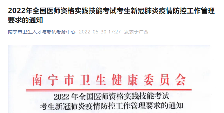 廣西南寧市2022年全國醫(yī)師資格實踐技能考試考生新冠肺炎疫情防控工作管理要求的通知