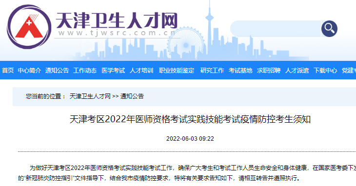 天津考區(qū)2022年醫(yī)師資格考試實(shí)踐技能考試疫情防控考生須知