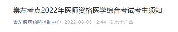 廣西考區(qū)崇左考點2022年醫(yī)師資格醫(yī)學綜合考試考生須知