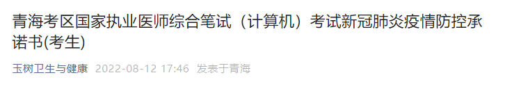 青海省玉樹考點(diǎn)2022年執(zhí)業(yè)醫(yī)師資格綜合考試考前通告