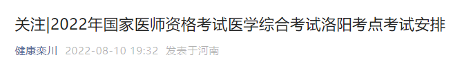 洛陽考點欒川縣2022年中西醫(yī)執(zhí)業(yè)醫(yī)師資格考試醫(yī)學綜合考試安排