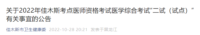 關(guān)于2022年黑龍江佳木斯考點醫(yī)師資格考試醫(yī)學(xué)綜合考試“二試(試點)有關(guān)事宜的公告