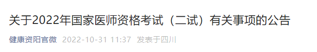 四川省資陽市關(guān)于2022年國家醫(yī)師資格考試(二試)考前疫情防控通知公告
