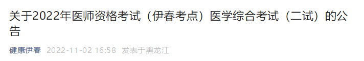 關(guān)于2022年醫(yī)師資格考試(伊春考點)醫(yī)學綜合考試(二試)的公告