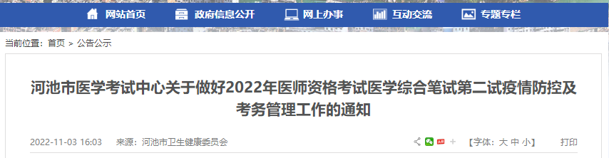 河池市醫(yī)學考試中心關于做好2022年醫(yī)師資格考試醫(yī)學綜合筆試第二試疫情防控及考務管理工作的通知