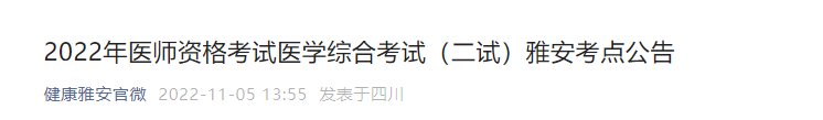 2022年醫(yī)師資格考試醫(yī)學(xué)綜合考試(二試)雅安考點(diǎn)公告