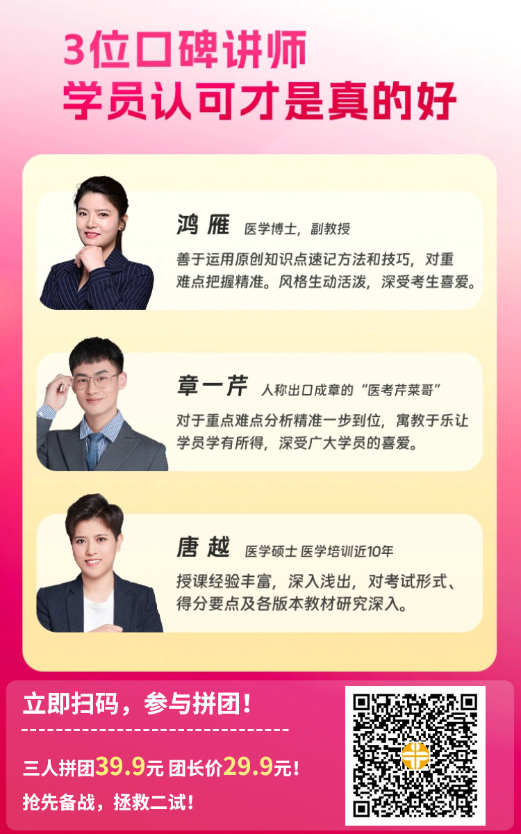 ·“雖然估分沒(méi)底,但是萬(wàn)一過(guò)了呢?錢(qián)不白花了?”別擔(dān)心,價(jià)格已經(jīng)打下來(lái)了!原價(jià)69.9的課程,現(xiàn)在拼團(tuán)只要39.9,團(tuán)長(zhǎng)還能享受更低29.9的價(jià)格!這么低的價(jià)格,可能都沒(méi)有一碗麻辣燙貴哦——如果過(guò)了,就當(dāng)給奮戰(zhàn)的自己買(mǎi)個(gè)醫(yī)考紀(jì)念品。如果沒(méi)過(guò),搶先備戰(zhàn)的你,面對(duì)二試豈不更有底氣!