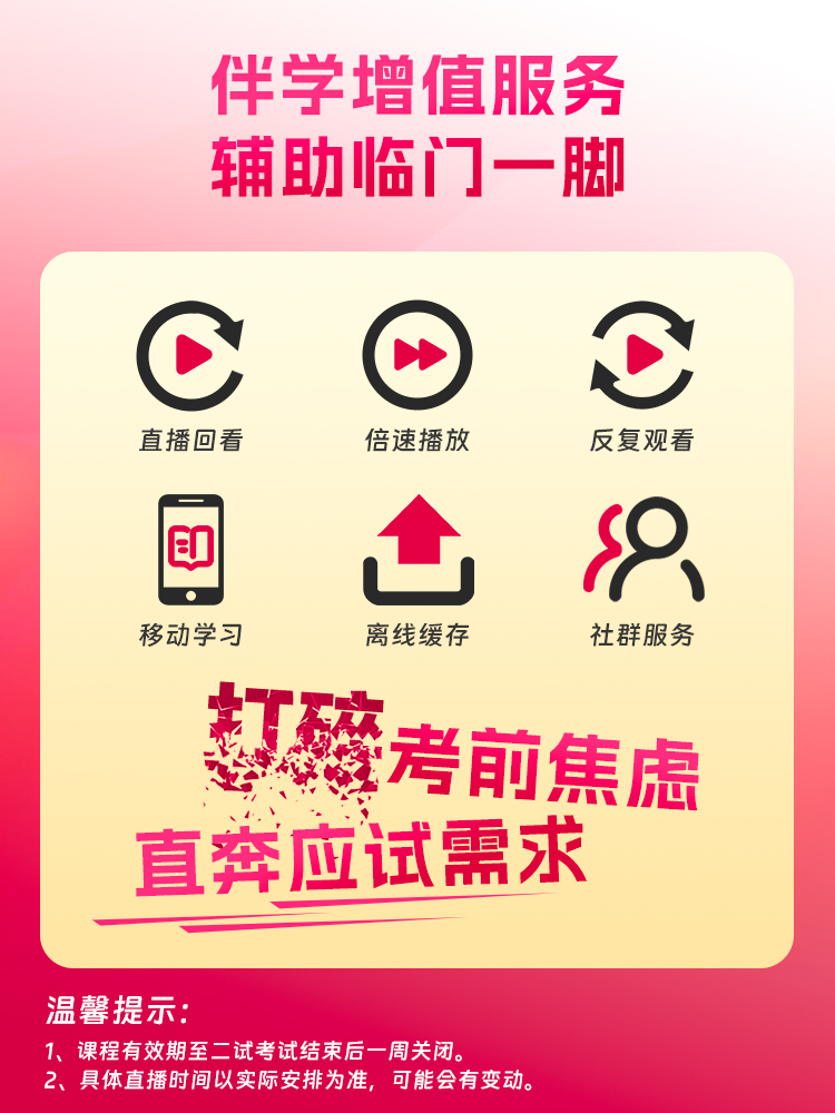 (溫馨提示:僅限在活動(dòng)期內(nèi)購(gòu)買(mǎi)課程,課程購(gòu)買(mǎi)后到二試考試結(jié)束后一周關(guān)閉,過(guò)期自動(dòng)關(guān)課)