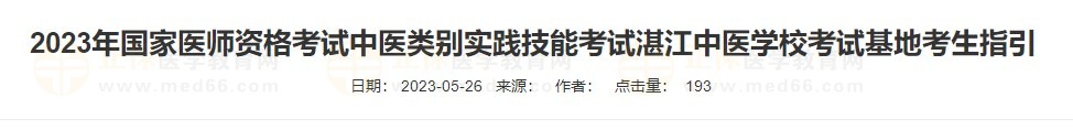 廣東省2023醫(yī)師資格(中醫(yī))考試實踐技能考試基地其一設(shè)置在湛江中醫(yī)學(xué)校,目前廣東省2023醫(yī)師技能準考證打印入口已開通,請確認自己準考證考場安排為湛江中醫(yī)學(xué)校的考生仔細查看以下官方考生須知: