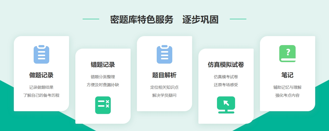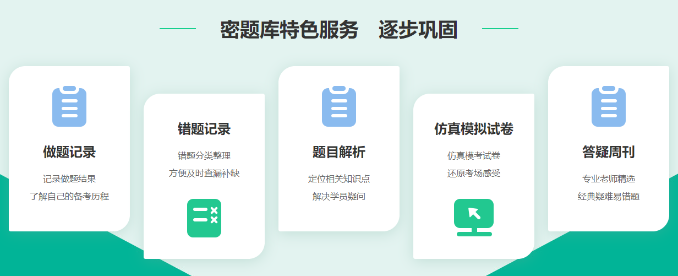 機械做題,不知如何通過做題提高自己的復(fù)習(xí)狀態(tài)?密題庫特色服務(wù):做題記錄、錯題記錄、題目解析、仿真模擬卷,讓您刷題的同時對知識點的掌握更加透徹!
