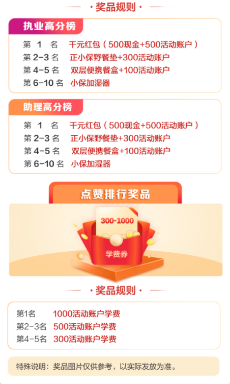參與曬分有禮活動在頁面里填寫成績及感言,即可生成專屬成績海報(bào),海報(bào)支持點(diǎn)贊(您可將成績海報(bào)發(fā)給您的好友為您點(diǎn)贊)?;顒訉⒓皶r(shí)公布高分榜和點(diǎn)贊榜兩個(gè)名單,獎品依據(jù)相應(yīng)排名發(fā)放。