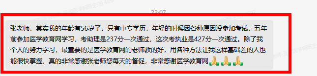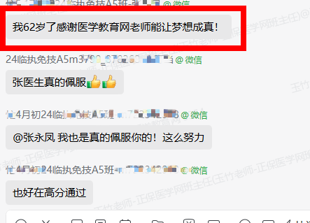 “感謝醫(yī)學(xué)教育網(wǎng),感謝各位老師,我們班可能都過了!“