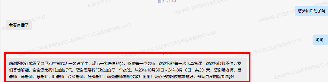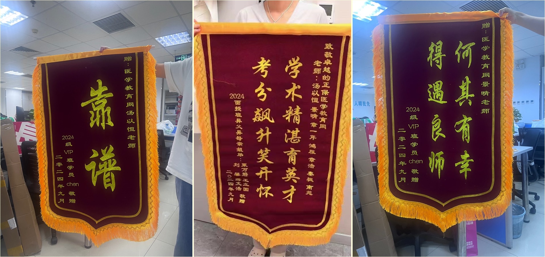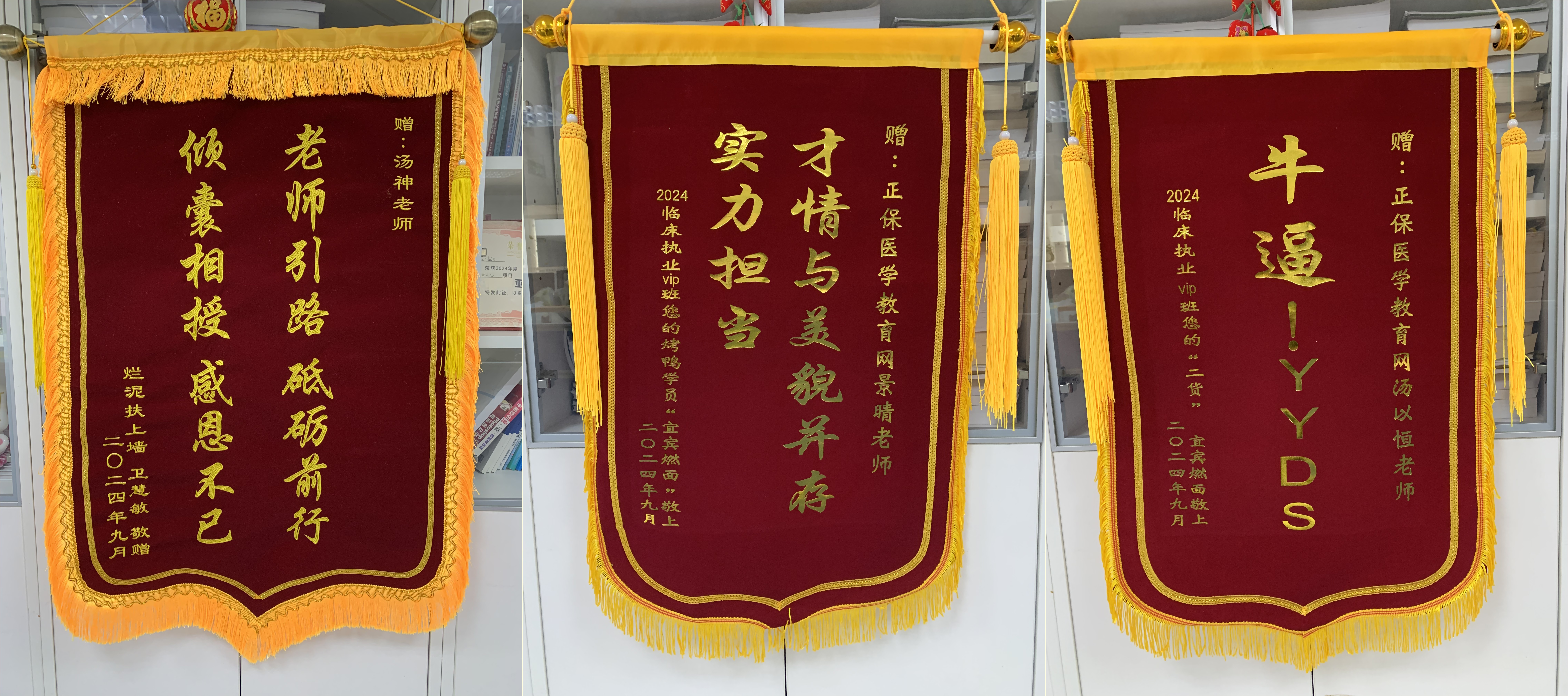 以上來自醫(yī)學(xué)教育網(wǎng)VIP以及面授班學(xué)員分享,有頂配老師帶領(lǐng)大家直擊重難點(diǎn),加上班主任老師的每日督學(xué),就是要解決大家自覺學(xué)習(xí)性差的弱點(diǎn)!大家給各位老師的錦旗已收到,再次恭喜大家!