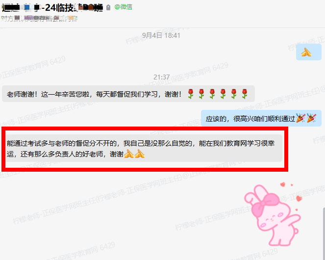 “老師謝謝!這一年辛苦您啦,每天都督促我們學(xué)習(xí)。能通過考試多與老師的督促分不開,我自己是沒那么自覺地,能在我們醫(yī)學(xué)教育網(wǎng)學(xué)習(xí)很幸運(yùn),還有那么多負(fù)責(zé)任的好老師,謝謝!"