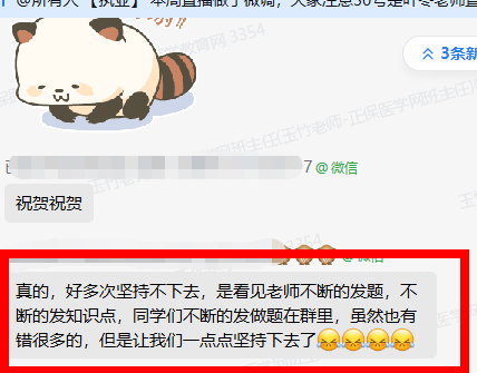 “真的,好多次堅(jiān)持不下去,是看見老師不斷的發(fā)題,不斷的發(fā)知識點(diǎn),同學(xué)們不斷的發(fā)做題在群里,雖然也有錯很多的,但是讓我們一點(diǎn)點(diǎn)堅(jiān)持下去了"