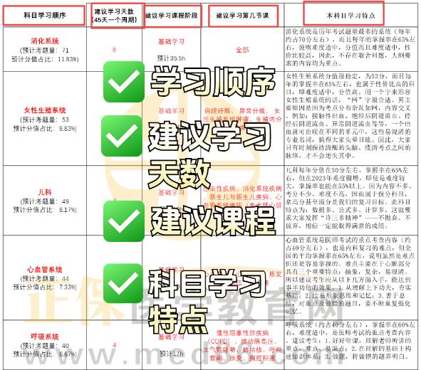 通過多年備考經(jīng)驗,整理規(guī)劃出各類別各科目學習順序,各科目建議學習時長,各科目學習特點等整理匯總成表格。