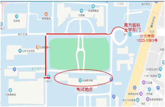 3.交通路線:考試基地不提供考生停車服務(wù),考生勿選擇駕車前往。請乘坐公共交通工具,從沙太南路南方醫(yī)科大學(xué)正門(東門)進入。