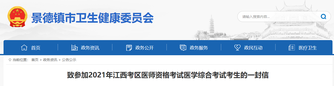 江西考區(qū)九江考點的衛(wèi)健委轉(zhuǎn)發(fā)了致參加2021年江西考區(qū)醫(yī)師資格考試醫(yī)學綜合考試考生的一封信,相信這是廣大考生們關(guān)注的事情,醫(yī)學教育網(wǎng)小編整理官方公告如下: