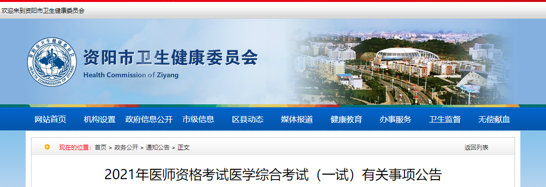 四川省資陽市2021年醫(yī)師資格考試醫(yī)學綜合考試(一試)考前公告