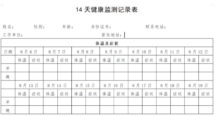 1.14天健康監(jiān)測(cè)記錄表