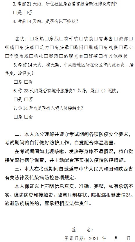 2.寶雞市2021年醫(yī)師資格綜合考試考生承諾書