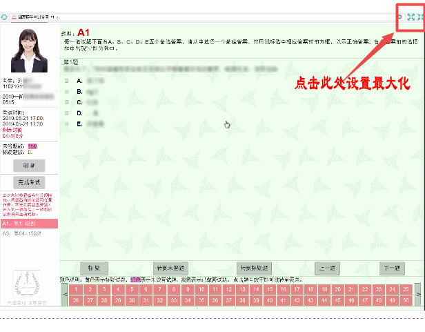但根據(jù)考生反饋,真正考試中的系統(tǒng)是一個網(wǎng)頁,默認(rèn)打開不是最大化,考生可以點擊瀏覽器右上角最大化按鈕調(diào)整(可以放大一點點)。如果實在看不清可以嘗試能否使用鍵盤“Ctrl和+”放大網(wǎng)頁比例或者調(diào)整電腦分辨率,必要時也可以舉手示意監(jiān)考老師。但還是建議考生考試的時候戴上“適合自己的眼鏡”更放心哦~