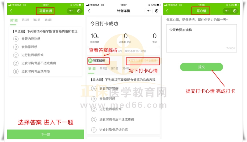【學(xué)習(xí)收獲】利用碎片化時(shí)間,每天幾分鐘隨時(shí)隨地快速了解考點(diǎn)和答題技巧!還等什么?加入“醫(yī)考愛打卡”,和所有醫(yī)考人一起奮戰(zhàn)吧!學(xué)習(xí)是一種習(xí)慣,讓好習(xí)慣從今天開始!