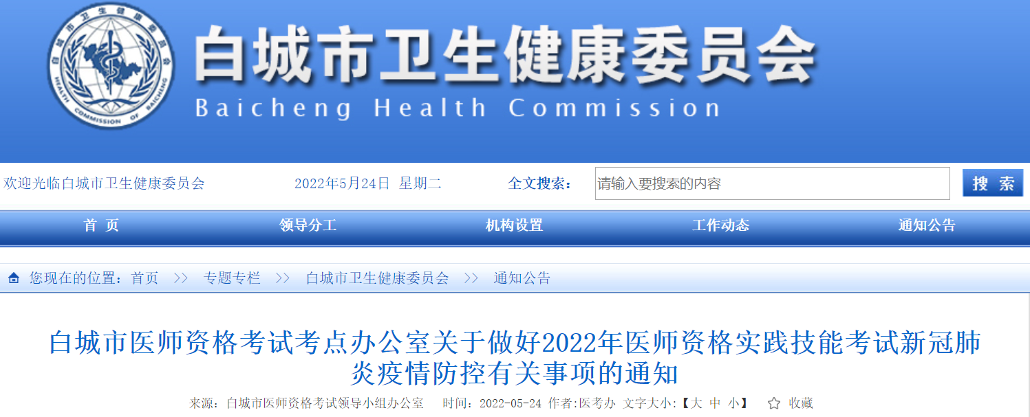 補(bǔ)充通知:白城市2022年醫(yī)師資格實(shí)踐技能考試新冠肺炎疫情防控有關(guān)事項(xiàng)的補(bǔ)充通知