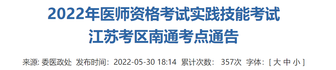 2022年醫(yī)師資格考試實(shí)踐技能考試江蘇考區(qū)南通考點(diǎn)通告