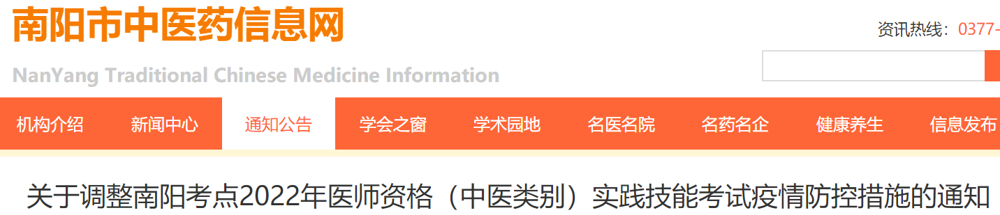 關(guān)于調(diào)整南陽(yáng)考點(diǎn)2022年醫(yī)師資格(中醫(yī)類(lèi)別)實(shí)踐技能考試疫情防控措施的通知