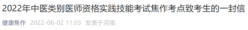 以上分享的“2022年中醫(yī)類別醫(yī)師資格實踐技能考試焦作考點致考生的一封信”內容,由醫(yī)學教育網小編搜集整理,如果您覺得對您有所幫助,可以分享給朋友。想了解更多醫(yī)學考試信息、復習資料、備考干貨請關注醫(yī)學教育網。