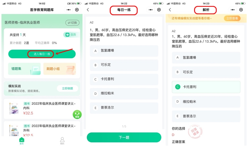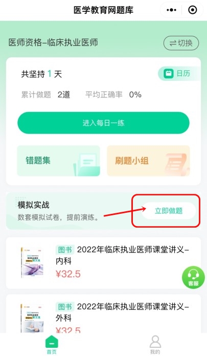 1.請在醫(yī)學教育網(wǎng)題庫小程序內(nèi),進行查看和做題。