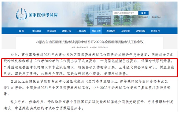 【通知原文】內(nèi)蒙古自治區(qū)醫(yī)師資格考試領(lǐng)導(dǎo)小組召開(kāi)2022年全區(qū)醫(yī)師資格考試工作會(huì)議